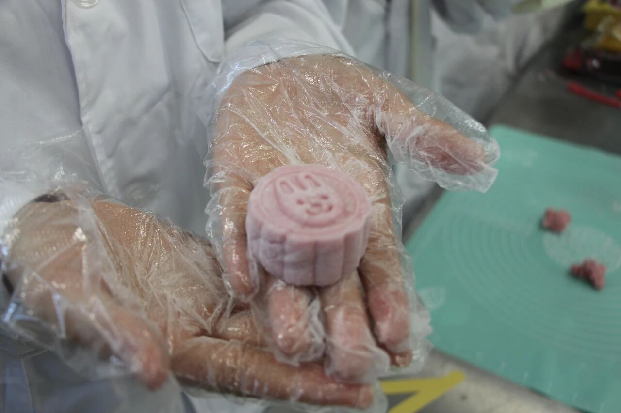 的专业实验室中,同学们化身“月饼匠人”,从原料调配到揉面制皮,从馅料包裹到模具压花,每一个步骤都严谨又充满巧思。他们身着实验服,在专业设备与工具的辅助下,将对中秋的期盼、对家乡的眷恋都融入到一个个精致的月饼里。粉色的冰皮月饼在手中成型,花纹清晰的传统月饼摆满台面,同学们的脸上满是专注与喜悦,这不仅是一次专业实践,更是一场文化传承的生动课堂。