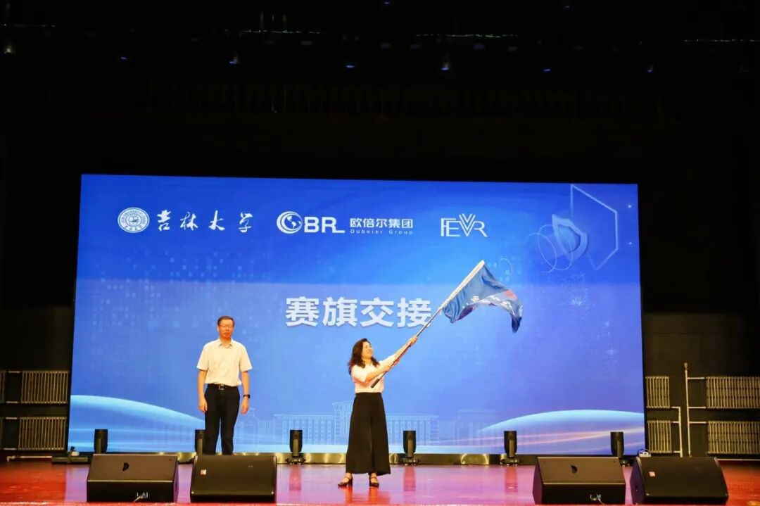 院长张铁华将赛旗交接给第八届全国食品专业工程实践训练综合能力竞赛承办单位大连工业大学国产自拍