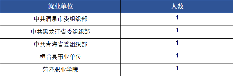 有部分毕业生入职公务员系统,部分同学进入机关和高校任职,具体情况如下: