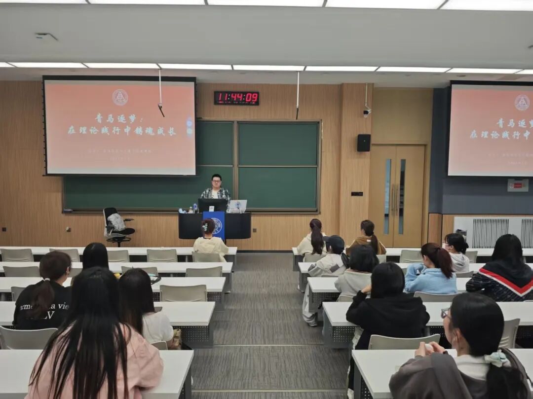 青马工程学员2021级食品质量与安全专业林慧凯、2023级食品质量与安全专业郑知媛作为主讲人,数名学生组织骨干以及团员参与其中。