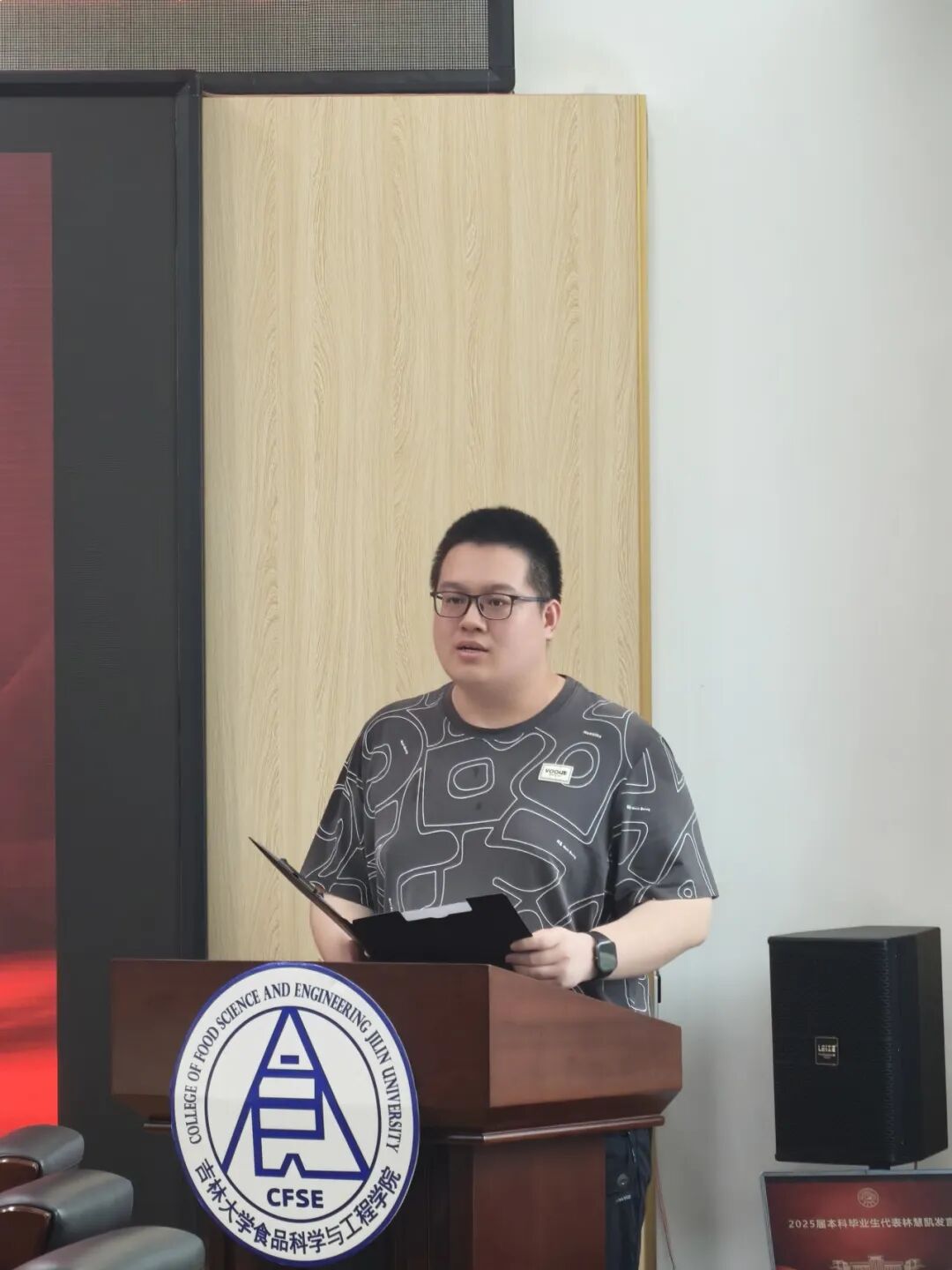 的成长历程,和与会师生一起分享了食品学科专业发展和2025届毕业生在学习、科研、实践等方面取得的优异成绩,深情嘱托同学们坚守初心,做“不食言”的食品人;健康生活,做“有品味”的食品人;专业报国,做“重科学”“精工程”的食品人,以实际行动践行食品人的社会责任,为全民健康事业贡献专业力量。