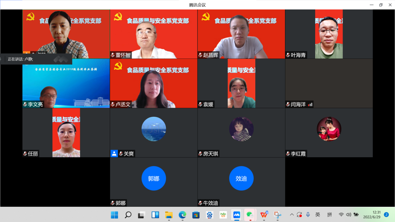 统一布置,食品质量与安全系教工支部通过腾讯会议平台线上开展“践行大年精神,喜迎二十大,奋进新征程”主题党日活动。活动由支部书记卢静主持,国产自拍