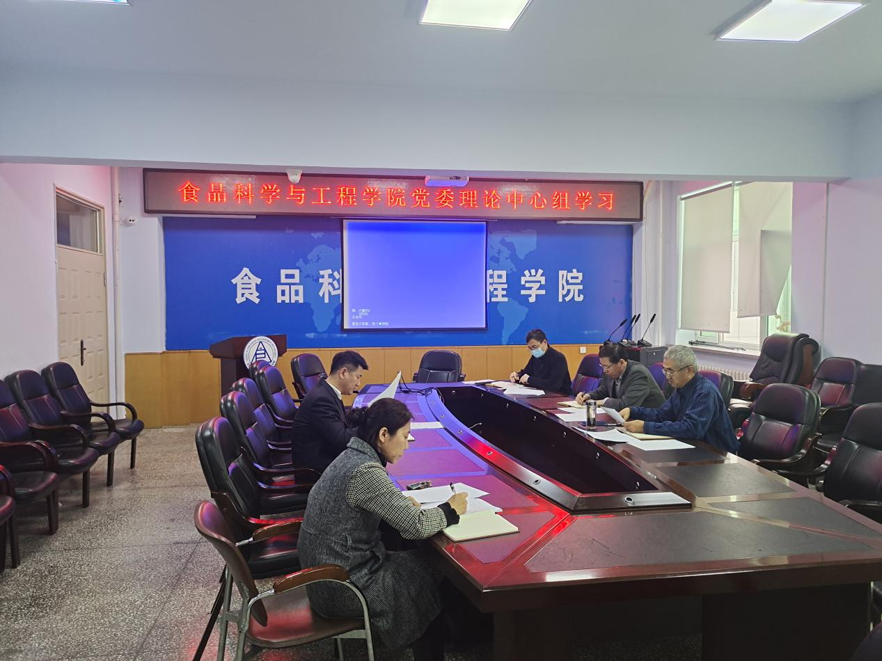 在食品楼三楼会议室召开党委理论中心组学习会议。专题学习传达党的十九届六中全会精神和《中国共产党十九届六中全会公报》内容。国产自拍